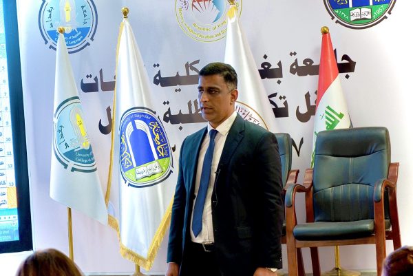 تنفيذا لتوجيهات رئاسة جامعة بغداد- قسم ضمان الجودة نظمت عمادة كلية اللغات في جامعة بغداد ورشة عمل والموسومة ( برنامج تحليل الاسئلة الامتحانية)، بحضور عميد كلية اللغات الدكتور علي عدنان والسادة المعاونون وعدد من اساتذة وموظفي الكلية وكليات اخرى .