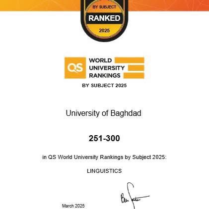 أحرزت كلية اللغات في جامعة بغداد تقدماً أكاديمياً مميزاً بدخولها تصنيف QS العالمي للتخصصات الجامعية لعام 2025 في مجال اللغات، ما يعكس التميز العلمي والبحثي للكلية وكوادرها التدريسية، ويسلط الضوء على جهودها في تطوير المناهج وتعزيز الإنتاج البحثي.