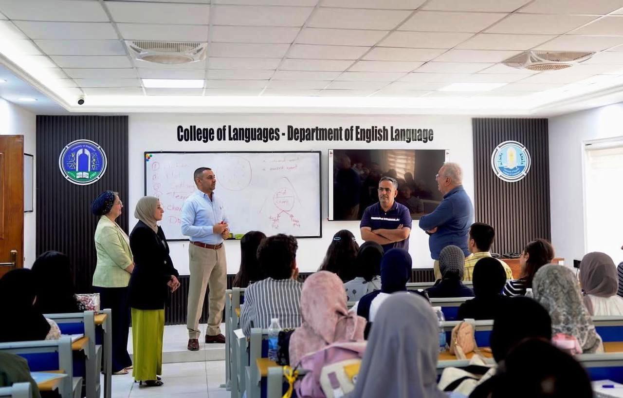وقد زار الضيف قسم اللغة الإنكليزية والتقى بأعضاء اللجنة العلمية وتدريسي القسم وطلبة الدراسات العليا، واطّلع على البرامج الأكاديمية وأهدافها، كما ألقى محاضرة متخصصة في الأدب الإنكليزي لطلبة الدراسات العليا، تخللتها مناقشات علمية ثرية حول مناهج البحث وأساليب التحليل الأدبي.