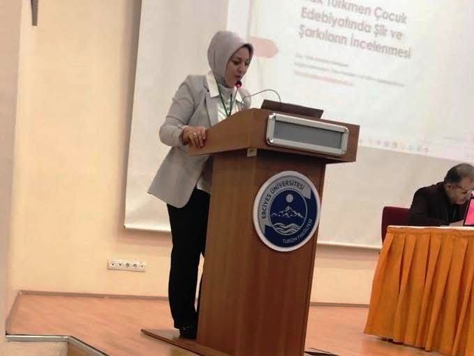 وقدمت التدريسية بحثاً علمياً بعنوان (دراسة القصائد والأغاني في أدب الأطفال لتركمان العراق)، تناولت فيه تعريفاً بأدب الأطفال وأشعارهم في البيئة التركمانية العراقية، متطرقة إلى خمسة نصوص شعرية قديمة للأطفال تمت ترجمتها من اللغة التركمانية القديمة المكتوبة بالحروف العربية إلى اللغة اللاتينية الحديثة. كما قامت الباحثة بتحليل هذه الأشعار من حيث الفكرة العامة والموضوعات والعناوين والبناء والشكل والأسلوب اللغوي، إضافة إلى دراسة الرسائل التربوية والتثقيفية الموجهة للطفل ضمنها.
