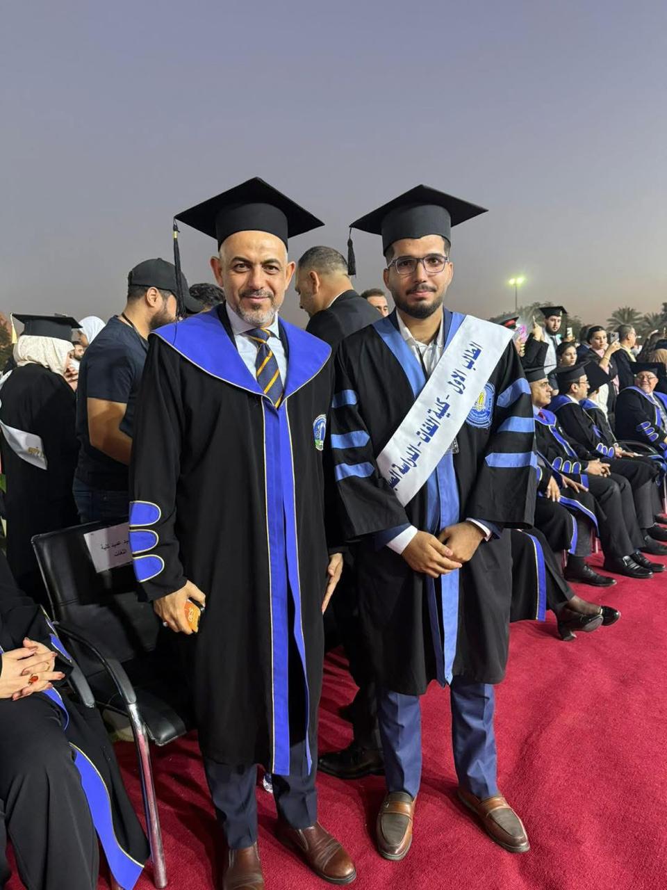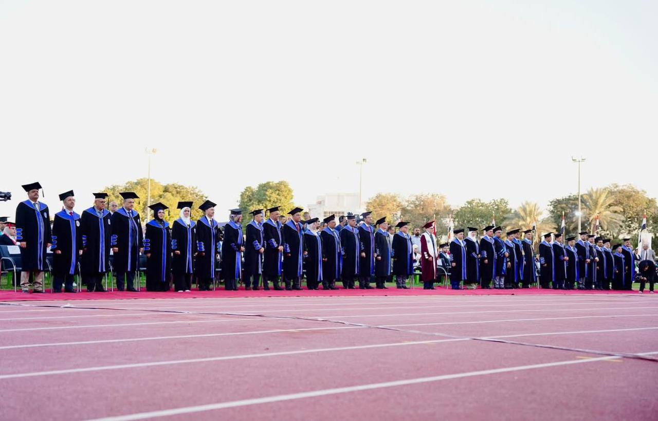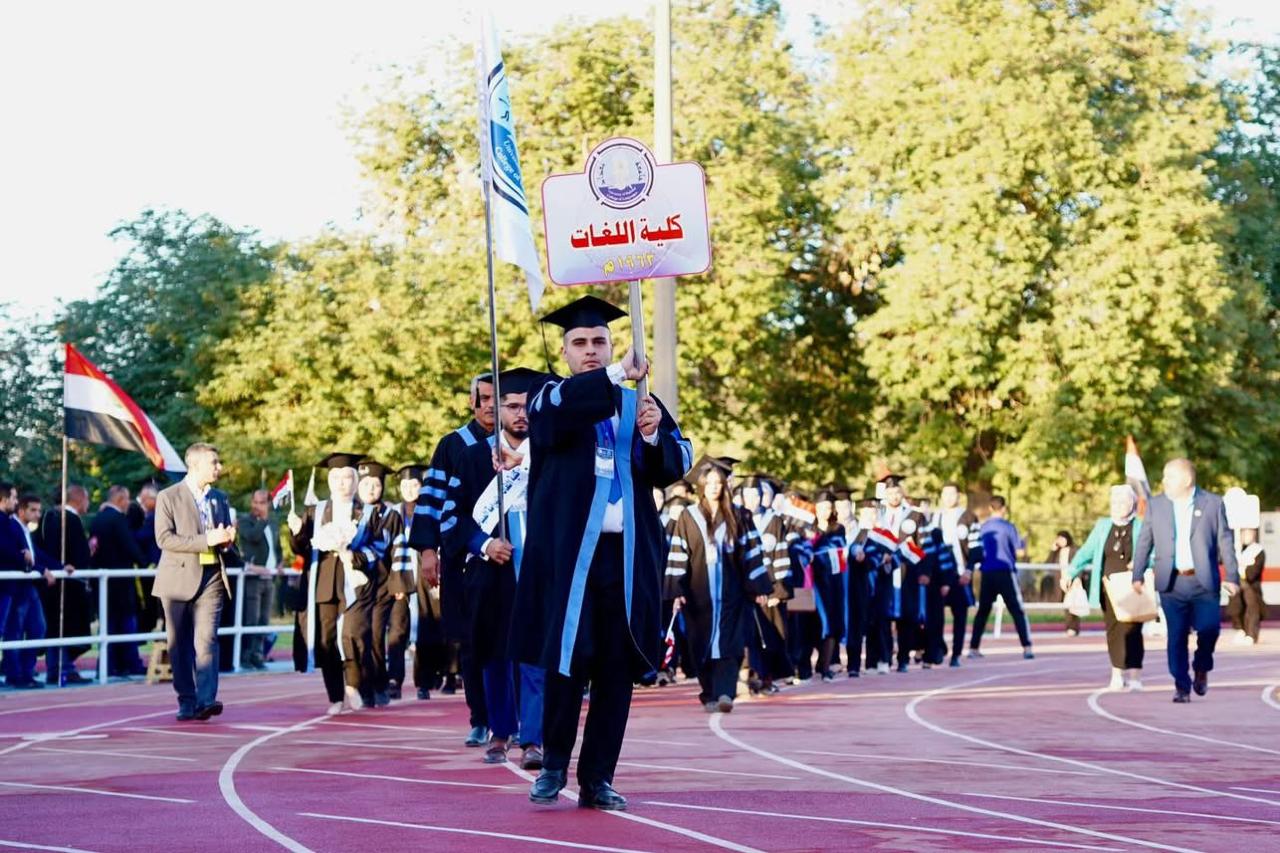 وشهدت الاحتفالية ترديد القسم من قبل الخريجين وقراءة الأمر الجامعي الخاص بالتخرج من قبل السيد رئيس الجامعة الاستاذ الدكتور بهاء ابراهيم انصاف بحضور اعضاء مجلس الجامعة ومجالس الكليات، حيث شاركت كلية اللغات متمثلة بعميدها الاستاذ الدكتور علي عدنان مشوش ومجلسها وعدد من أساتذتها وخريجيها للعام الدراسي ٢٠٢٤-٢٠٢٥، الذين عبّروا عن فخرهم بانتمائهم إلى هذا الصرح العلمي العريق.