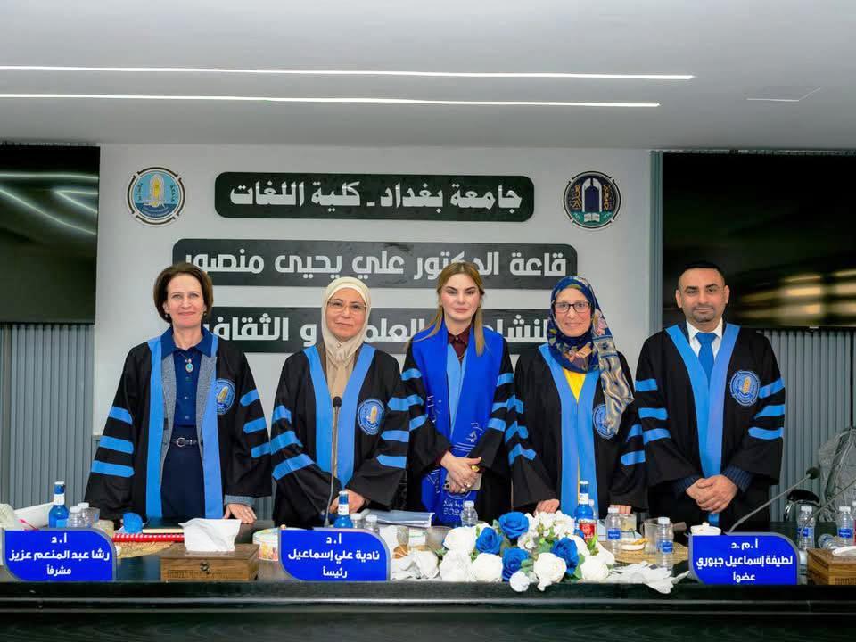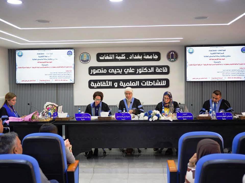 ناقش قسم اللغة الانكليزية في كلية اللغات بجامعة بغداد رسالة الماجستير الموسومة (ذوات البشرة الداكنة كاتبات ومنظرات: دراسة نقدية لمسرحيات افريقية – امريكية حديثة مختارة) للطالبة شهد عبد الكريم عبدالله.