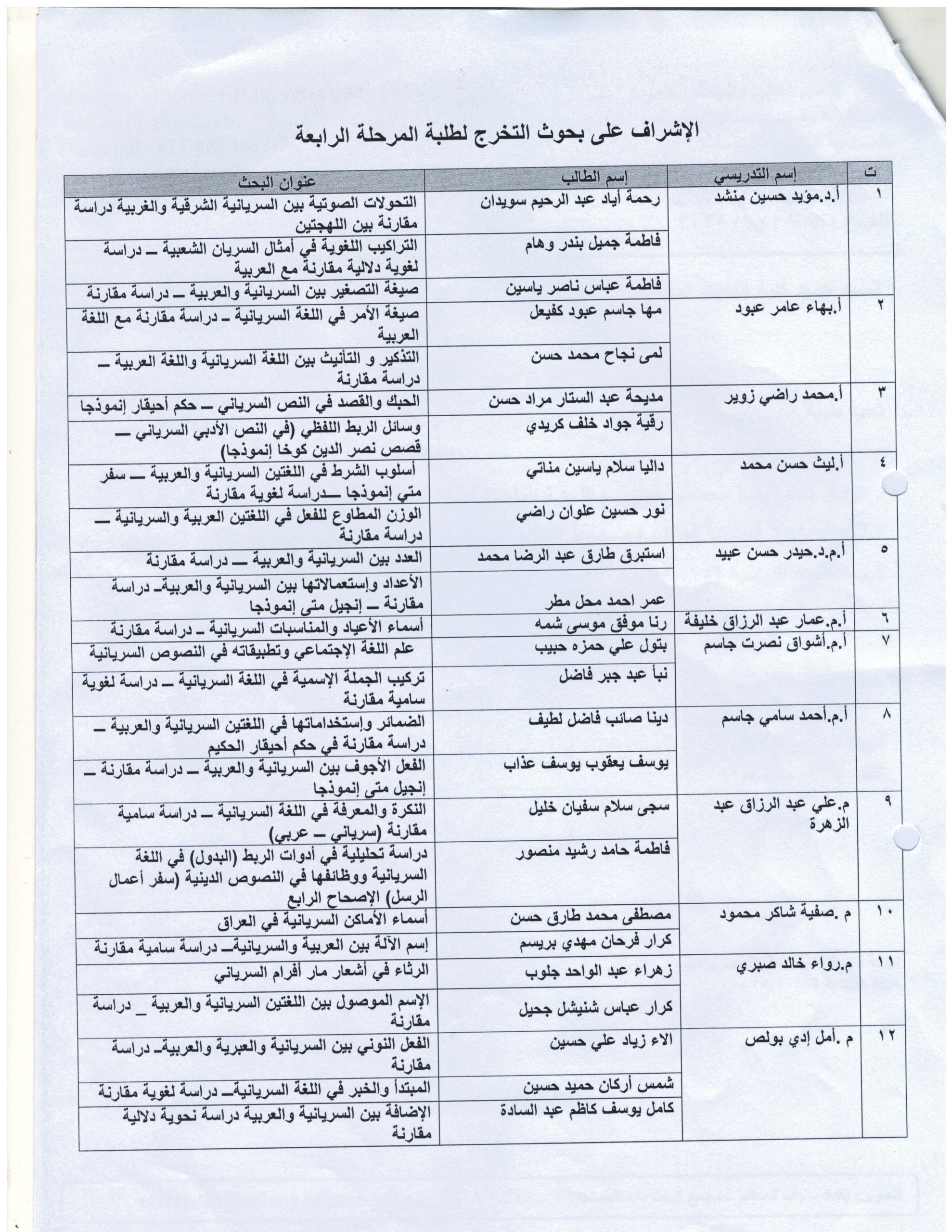 بحوث التخرج لطلبة قسم اللغة السريانية